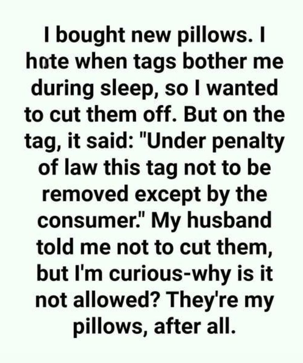 You’re lying in bed, enjoying a well-deserved nap, when you notice that annoying white tag sticking out of your pillow. It says, “NO ONE BUT THE CONSUMER MAY REMOVE THIS TAG.” Get ready for the time when you doubt yourself. What does that mean? Is it truly not okay to take it off?