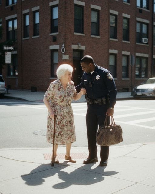 It started as just another routine moment. I was on my lunch break, patrolling my usual route, when I saw her—frail, cane in hand, hesitating at the crosswalk. Without thinking twice, I offered my arm and walked her across, steady and slow, like I’ve done for so many others before. She thanked me sweetly, but as we reached the other side, she paused, looked me straight in the eye, and said, “You still wrinkle your nose when you’re confused, just like when you were little.”