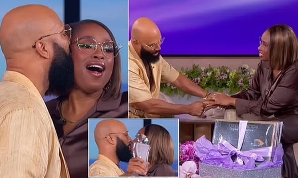 Hudson later gushed about Common, calling him a “very special man” who “radiates positivity and embodies it in everything that he does,” and presented him with a “joyful spirit award.” After handing Common the award, the two shared a kiss, prompting cheers in the studio.