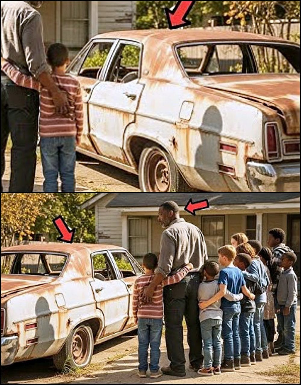 It was proof that they hadn’t given up on him. Every morning before school, they’d gather near it, some wiping the windshield with worn rags, others running their fingers across the hood as if polishing away its shame. Neighbors passed by and shook their heads.
