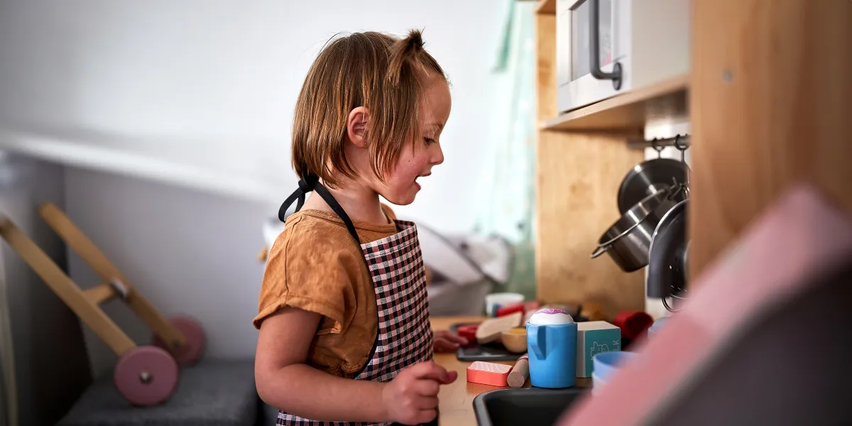 We want her to understand her body’s needs and make healthy choices. To support this, we set up a cute little semi-functional kitchen for her.