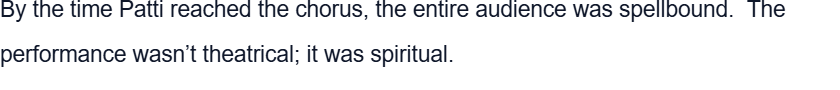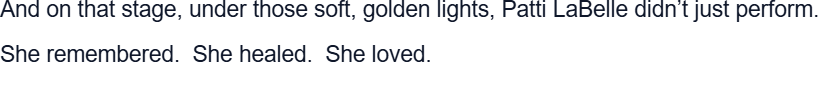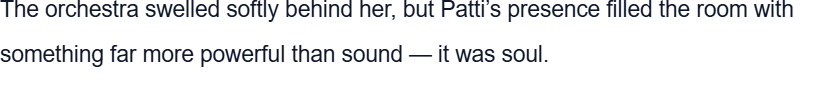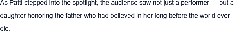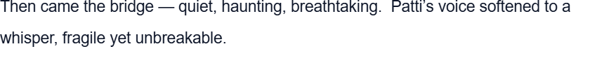 “Patti didn’t just sing; she gave us all a piece of her heart.”