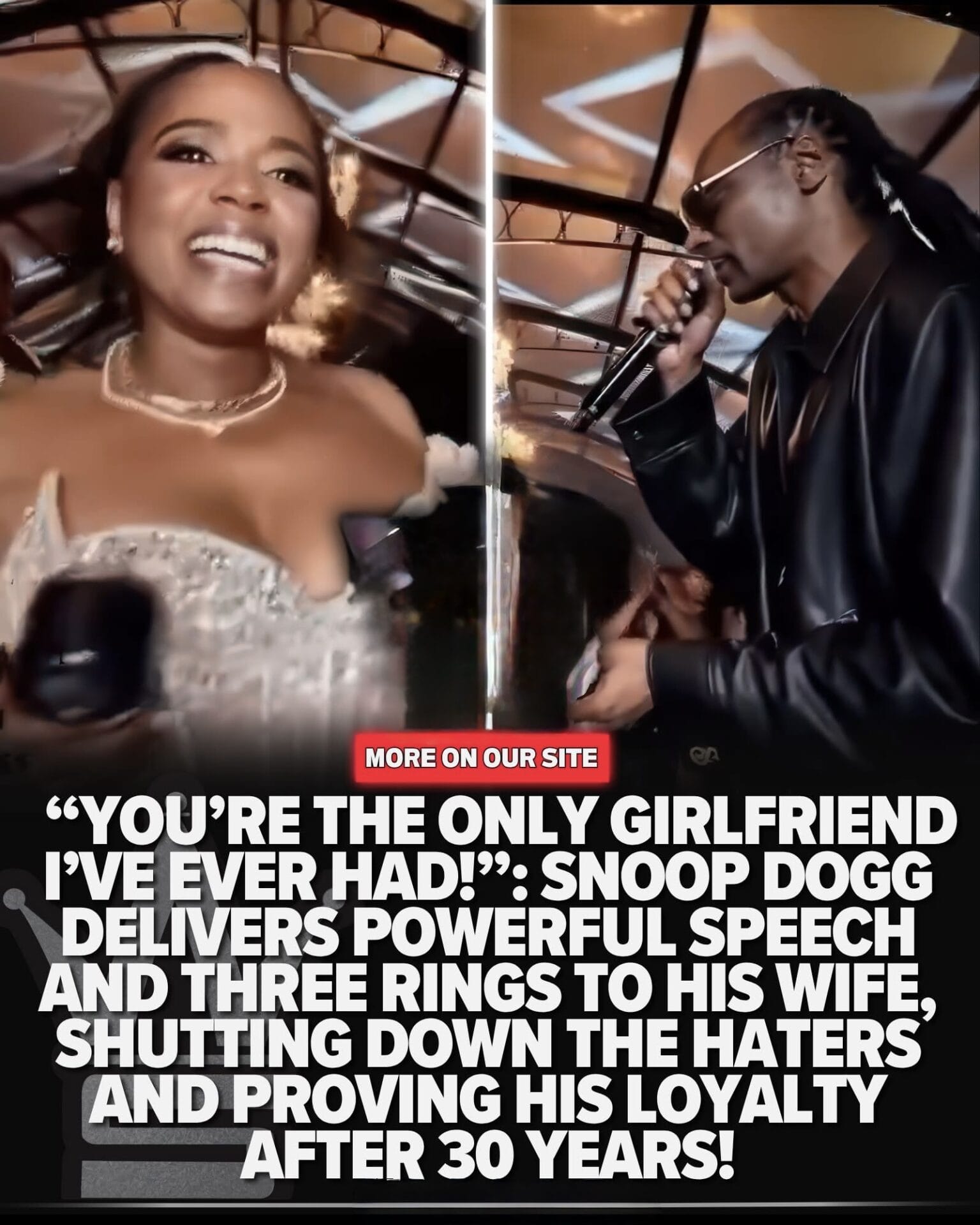 “The first one represents when you became my girlfriend — the only girlfriend I’ve ever had,” Snoop said proudly, his voice filled with emotion. “The second one is for when you became my wife and the mother of my kids. And this last one… this is for the love of my life.”