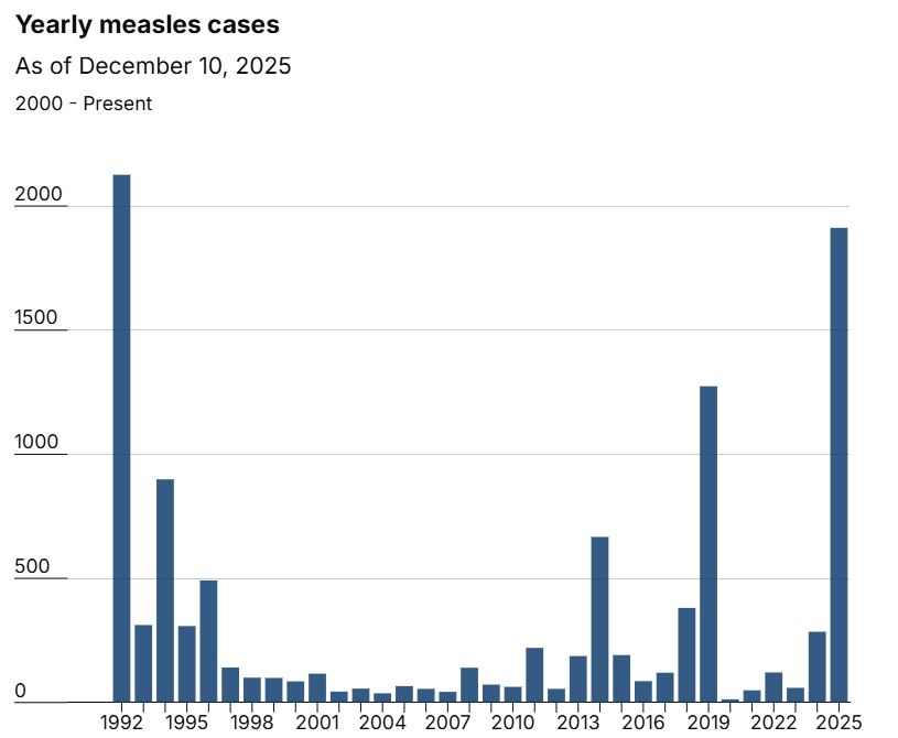 Measles, which was once considered eliminated in the US, has now infected 1,912 Americans and killed three people this year.