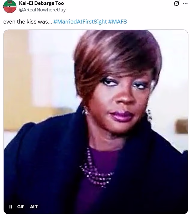 The episode centred on newlyweds David and Alissa, whose first meeting culminated in what many have branded the most uncomfortable kiss in the show’s history.